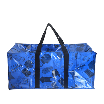 กระเป๋าผ้า PP หูหิ้วขนาดใหญ่สีฟ้ากระเป๋าช็อปปิ้งแบบพับได้สำหรับงานหนักสไตล์โมเดิร์นมีตัวอักษรจัดเก็บมือถือได้สะดวก